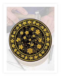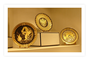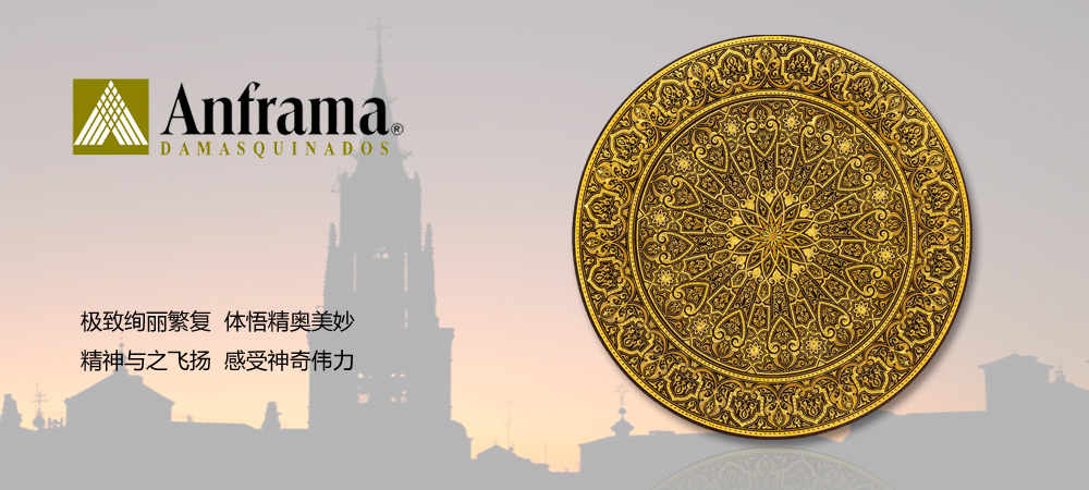 当冷兵器时代渐渐逝去,TOLEDO的工匠和艺术家们继续传承着此千年技艺,用艺术的形式来诠释高贵。他们用黄金镶嵌技艺打造出首饰、首饰盒及纯艺术品金雕装饰盘等。ANFRAMA是TOLEDO最负盛名的DAMASCENE(大马士革工艺)的金饰品牌。 |